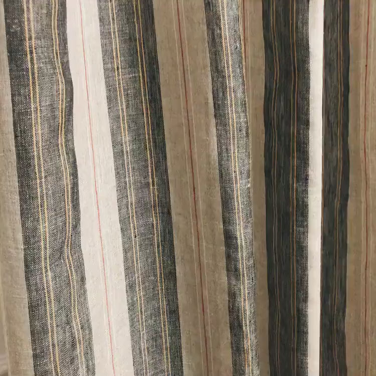 Black Orange Yellow and Red Striped Linen Curtain on Natural Beige