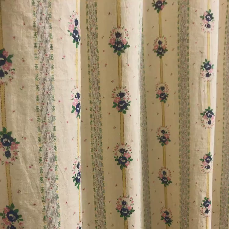 Blue and Yellow Striped Floral Curtain on Natural Beige