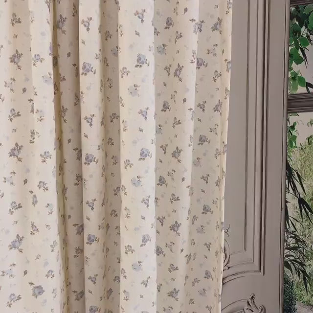 Blue and Purple Floral Curtain on Natural Beige