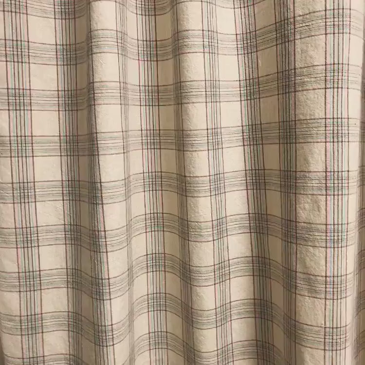 Brown Pink and Mint Plaid Curtain on Natural Beige