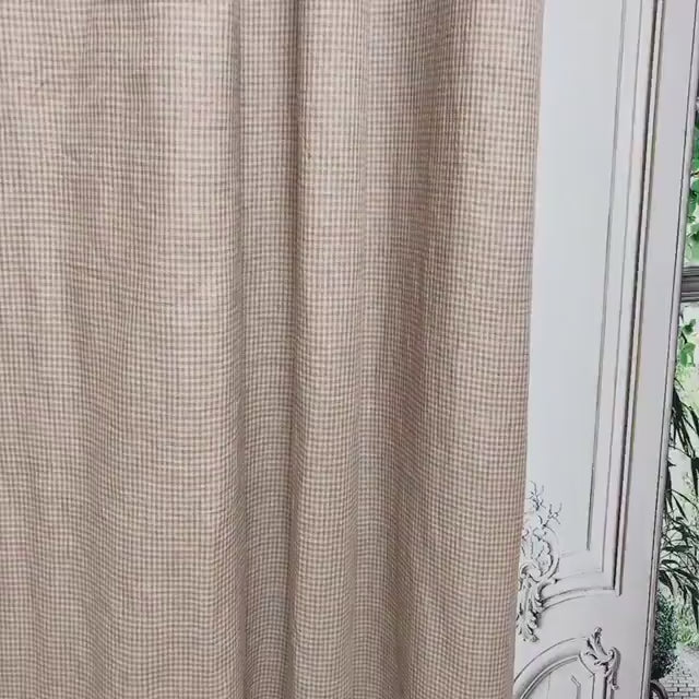 Brown and Natural Beige Tiny Plaid Curtain