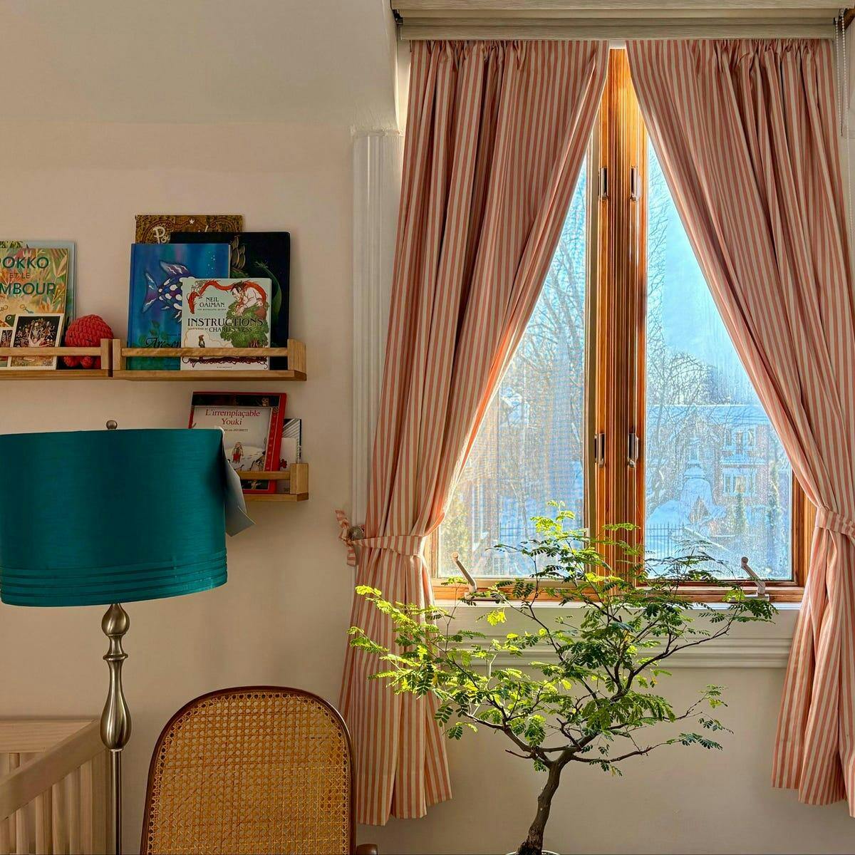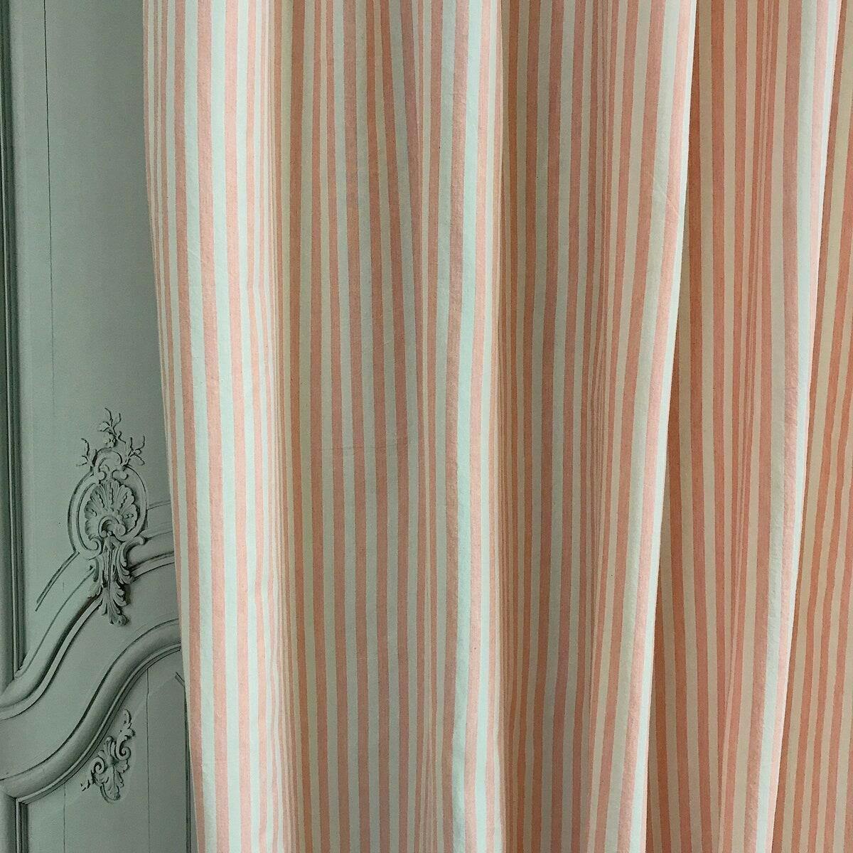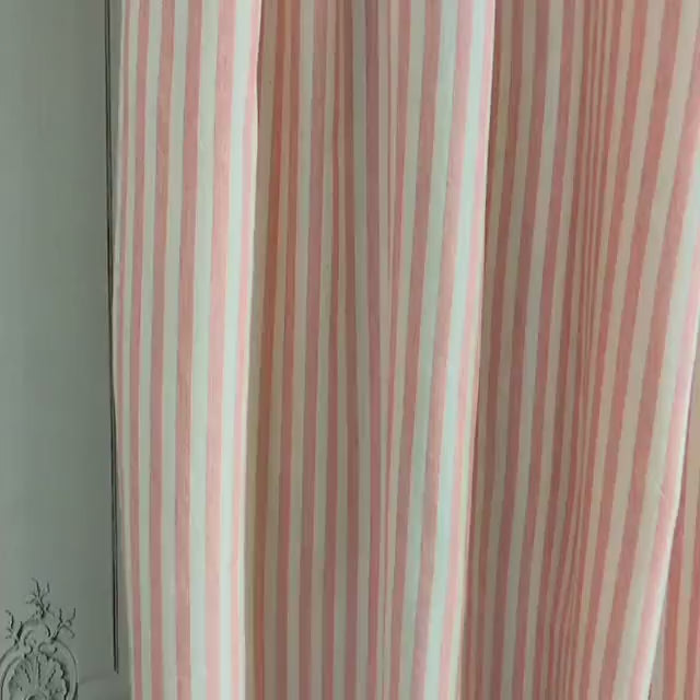 Faded Light Coral Pink Stripe Curtain on Ivory