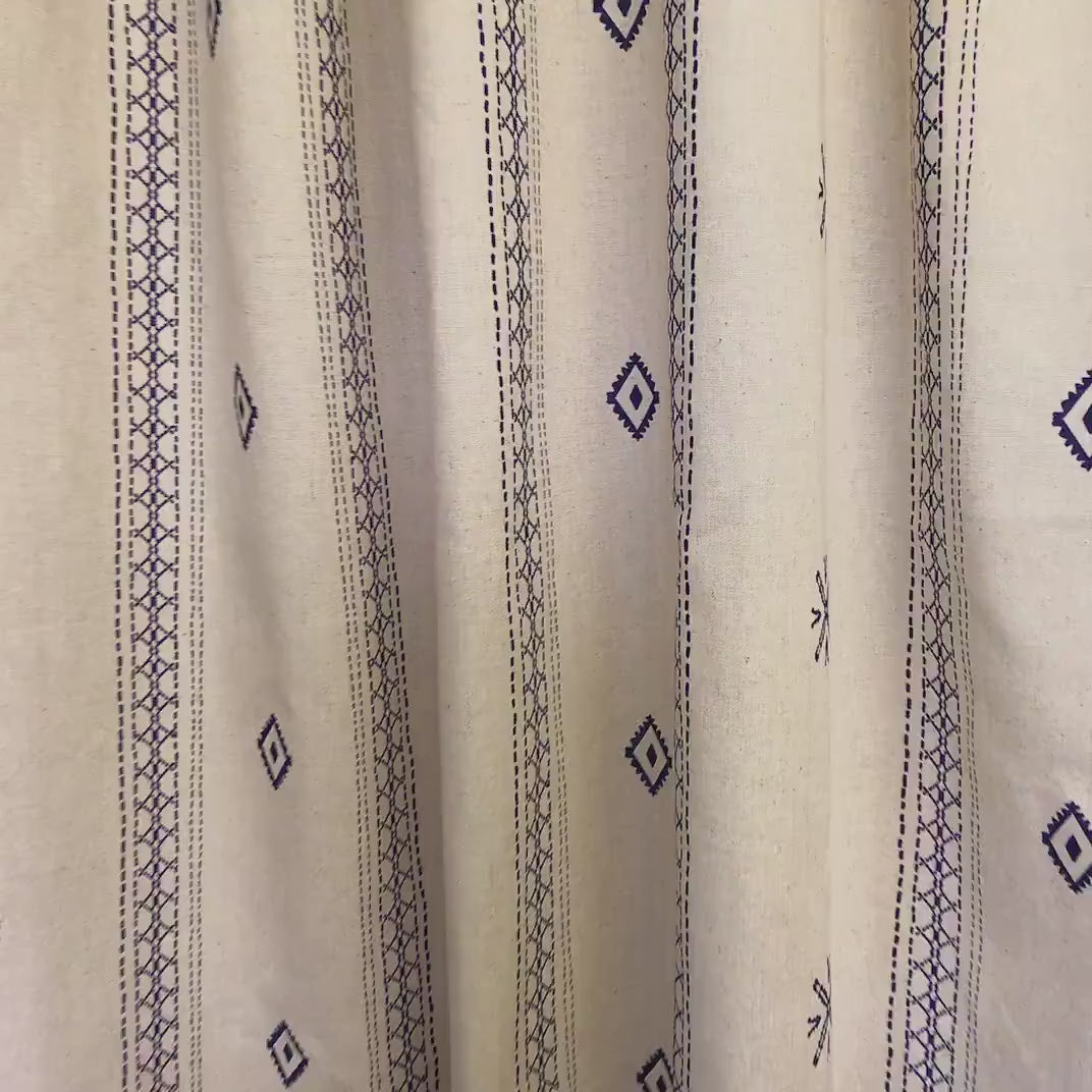 Indigo Blue Shapes Curtain on Natural Beige