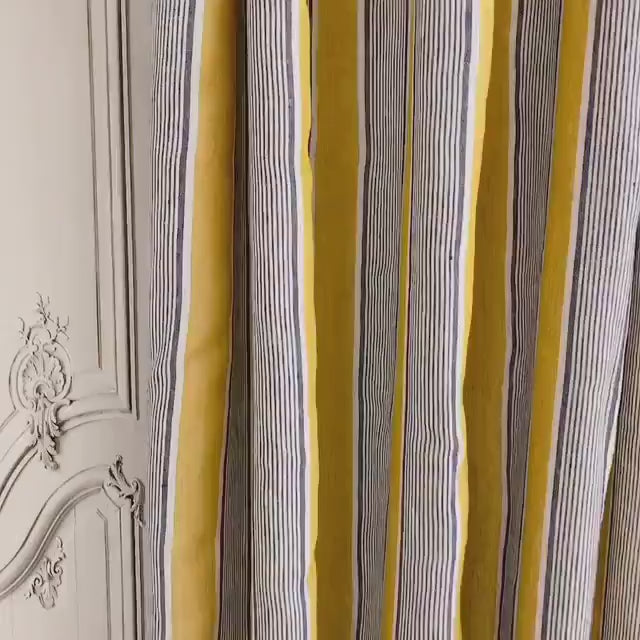 Indigo Blue Stripe Linen Curtain on Golden Mustard