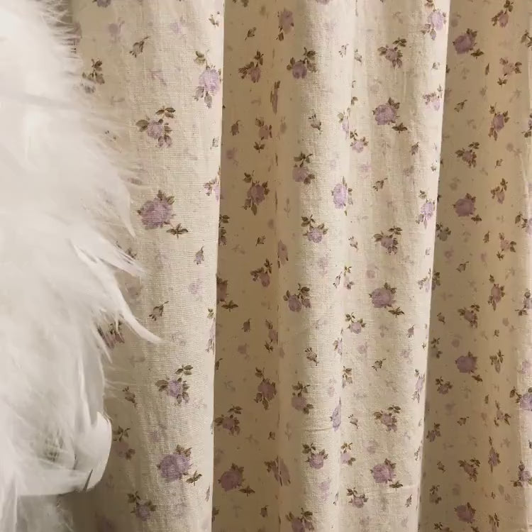 Soft Pale Lavender Floral Curtain on Natural Beige
