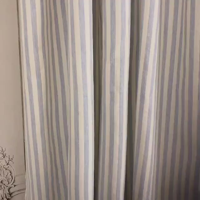 Light Blue Stripe Curtain on Ivory
