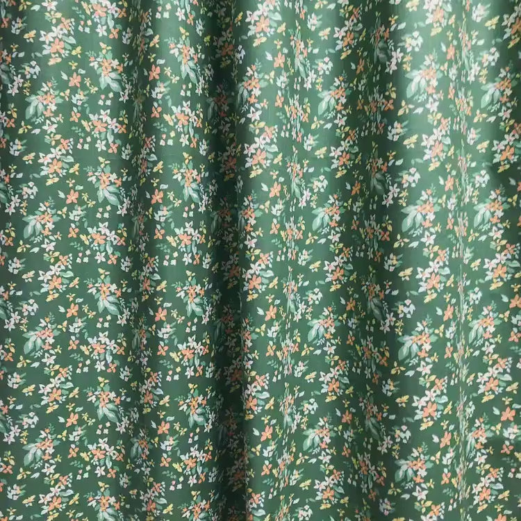 Peach and Yellow Micro Floral Curtain on Light Olive