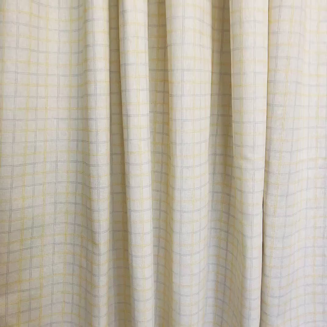 Plaid Mustard Blue Grey Pattern Linen Cotton Curtain Ivory Drapery
