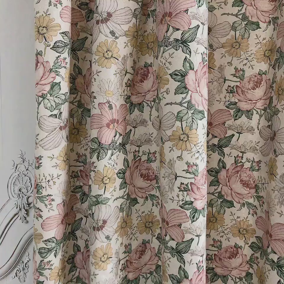 Muted Soft Pink Floral Curtain on Oatmeal Beige