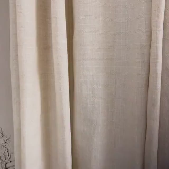 Natural Beige Tone-on-Tone Plaid Curtain