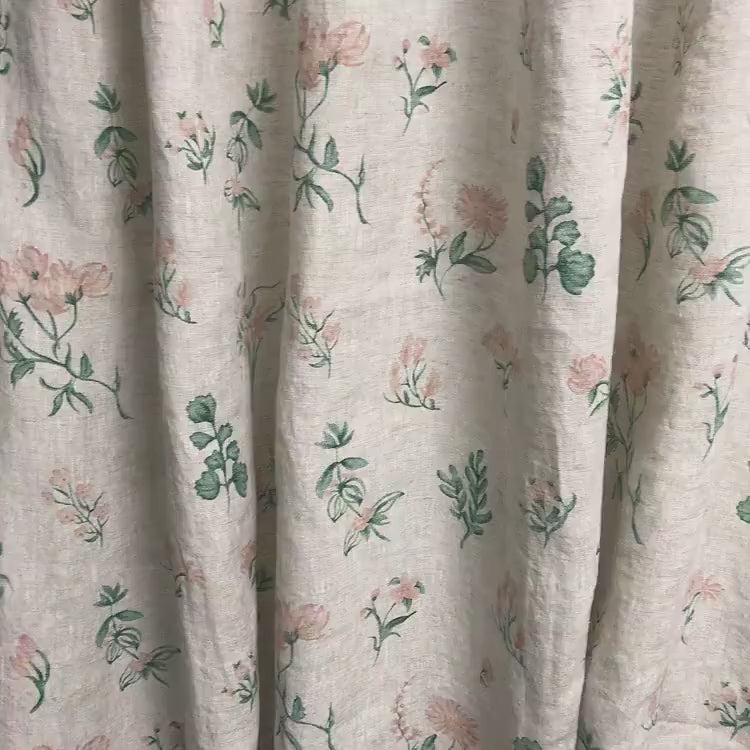Pale Baby Pink Floral Curtain on Soft Light Melange