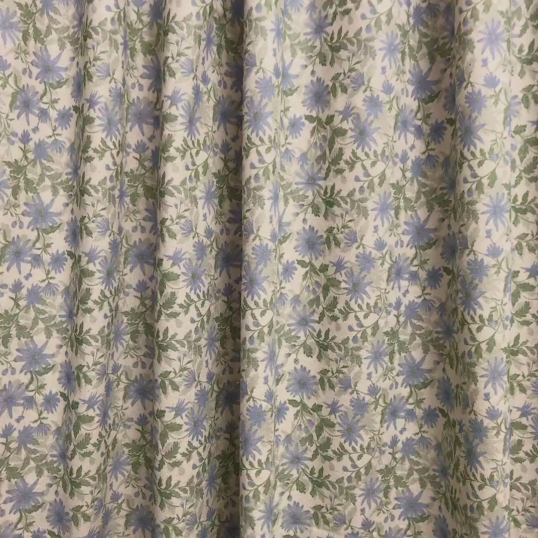 Pale Blue and Sage Floral Curtain on Natural Beige