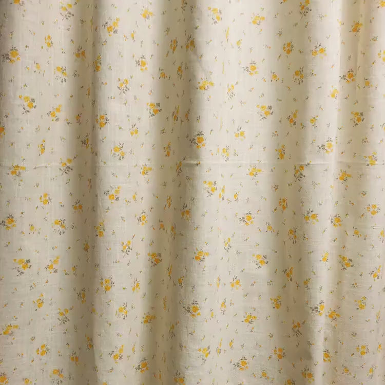Pale Orange Yellow Floral Curtain on Natural Beige