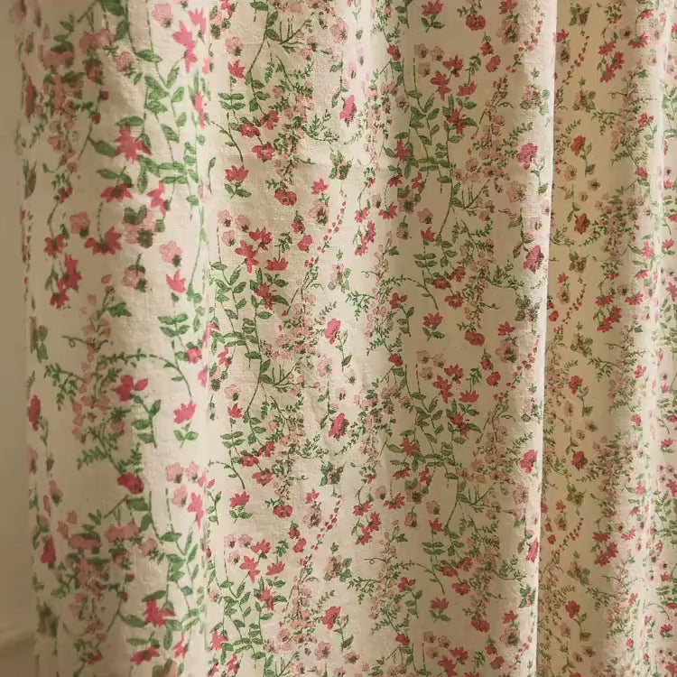 Fuchsia Pink and Green Wildflower Curtain on Natural Beige