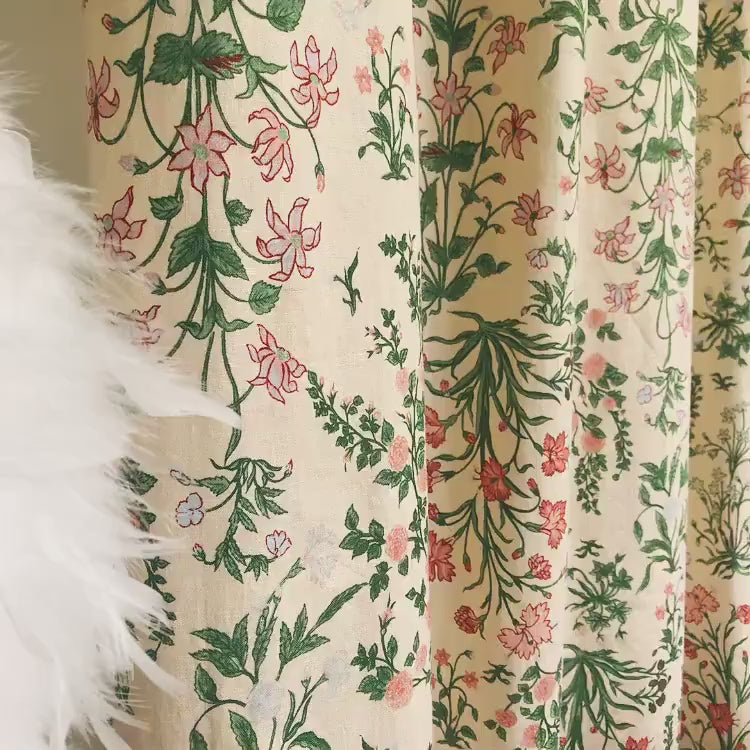 Pink and Pale Mint Floral Curtain on Buttercup Beige
