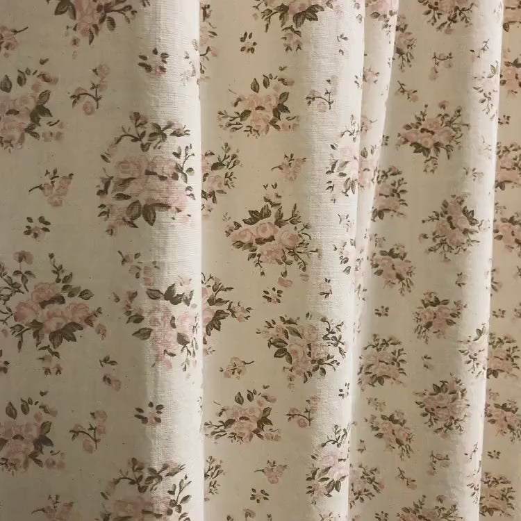 Small Pink Roses Curtain on Natural Beige
