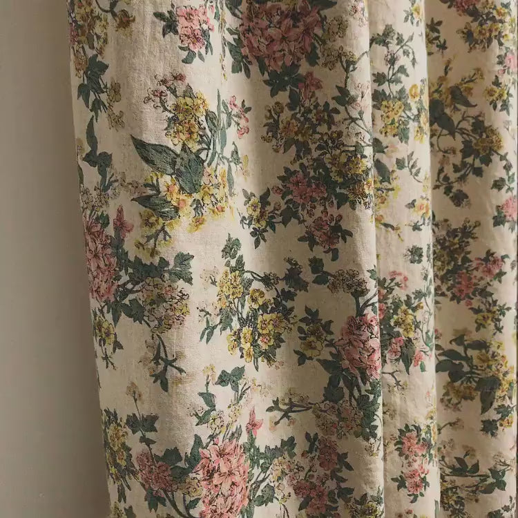 Pink and Yellow Floral Curtain on Natural Beige