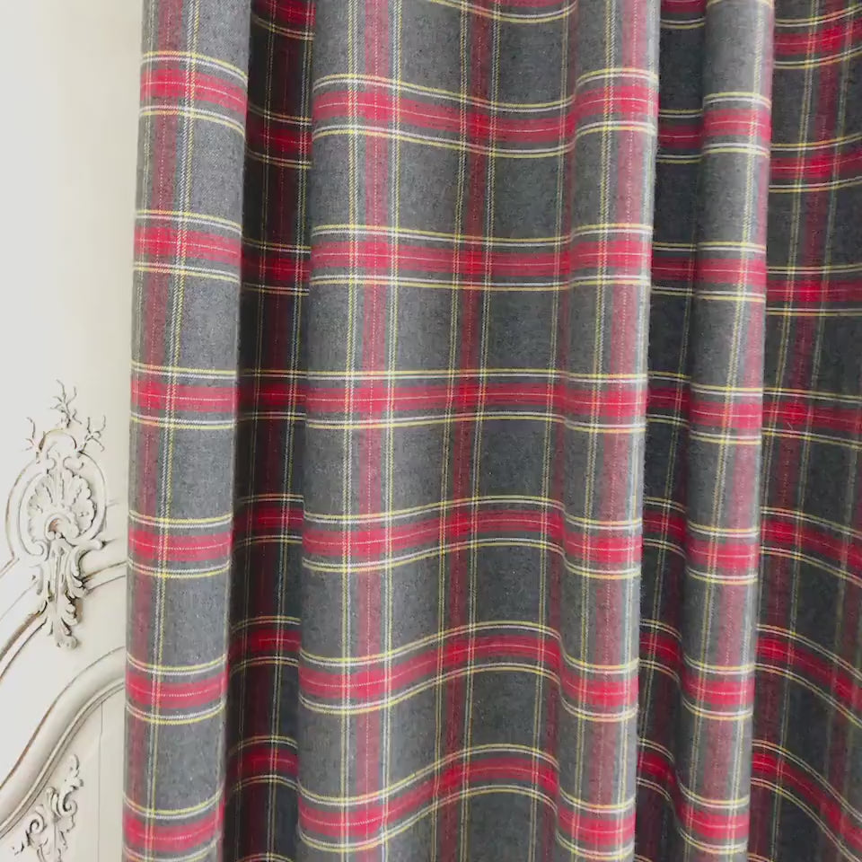 Red Burgundy Yellow Plaid Blushed Curtain on Grey