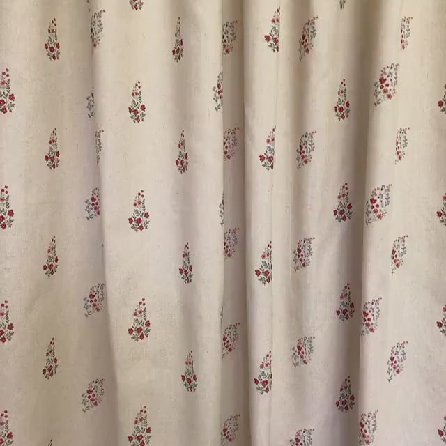 Red and Raspberry Pink Floral Curtain on Natural Beige