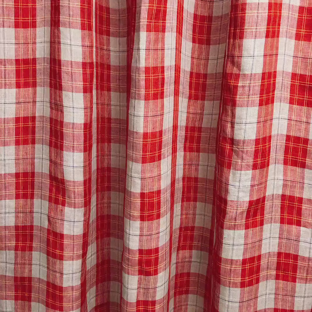 Red and Yellow Plaid Linen Curtain on Natural Beige with Orange Accents