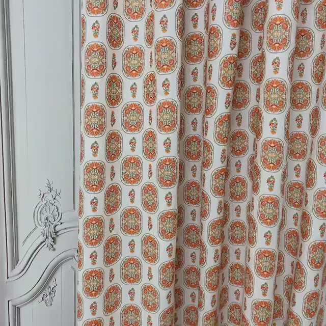Terracotta Orange Floral Curtain on Light Natural Beige