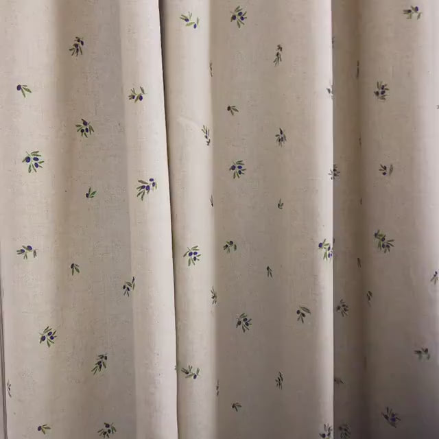 Tiny Blue Berry Pattern Curtain on Natural Beige