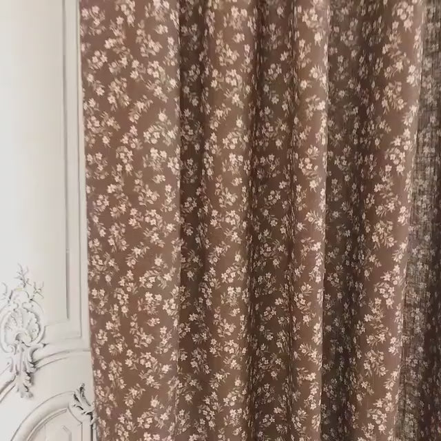 Tiny Pale Pink Floral Curtain on Deep Chocolate Brown