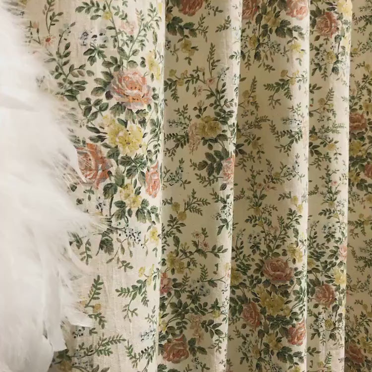 Toned Down Pink Floral Curtain on Natural Beige