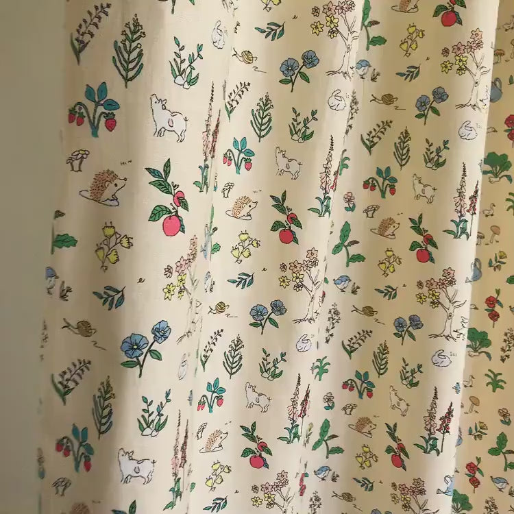 Whimsical Animal and Botanical Curtain on Yellow Beige